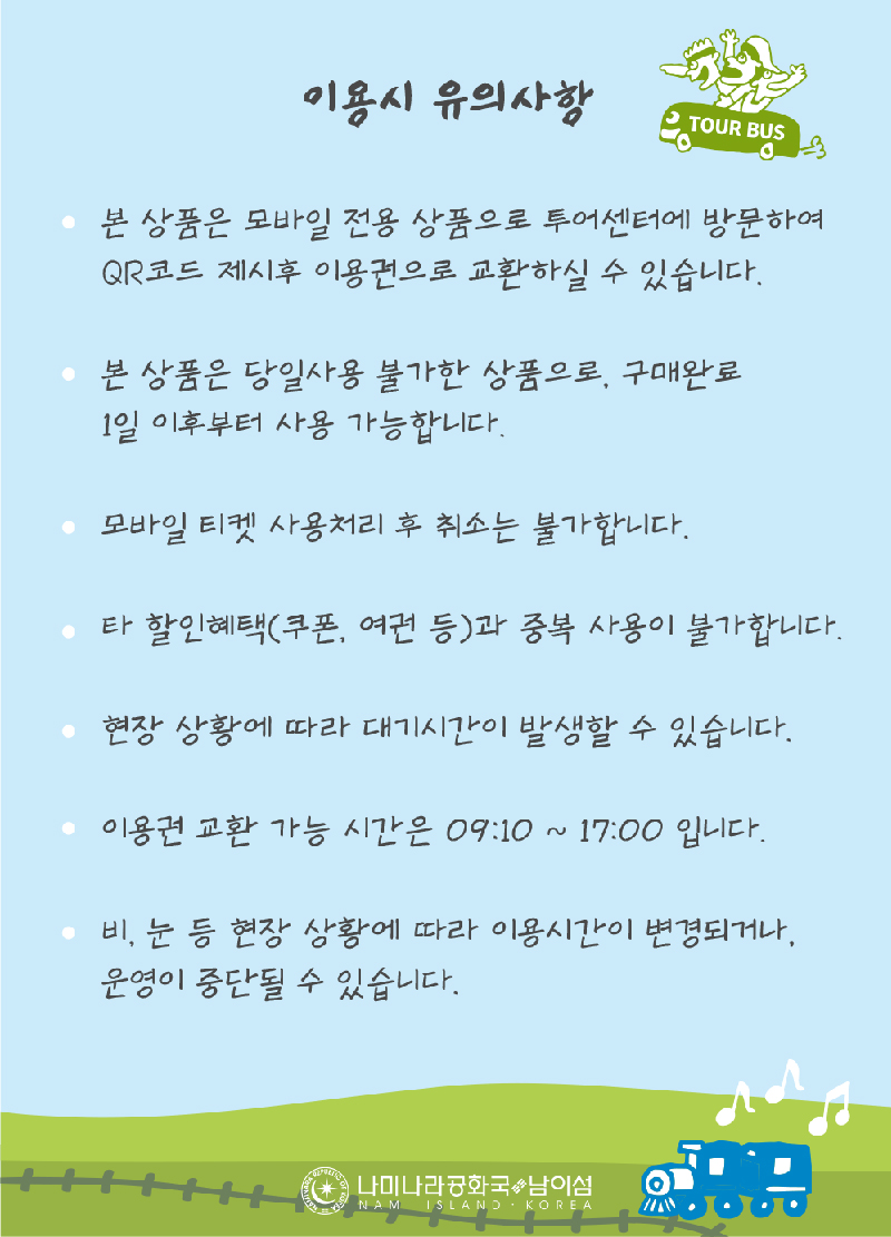 탑승장소 : 남이나루 부근 티켓 부스(쿠키하우스)