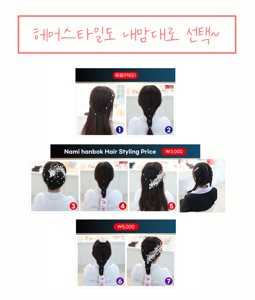 1. 한복헤어 : 기본 무료, 3천원, 5천원 中 택1