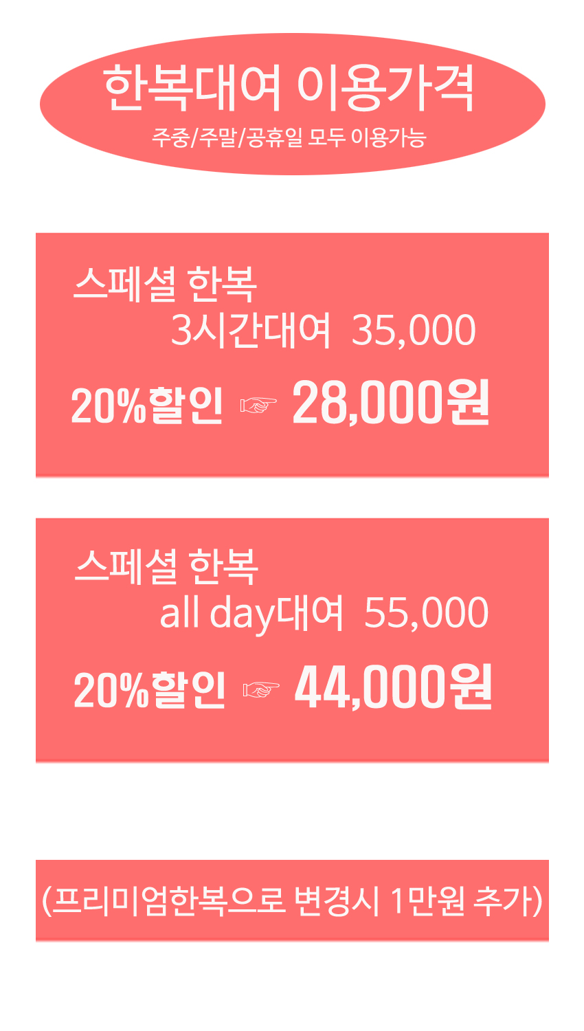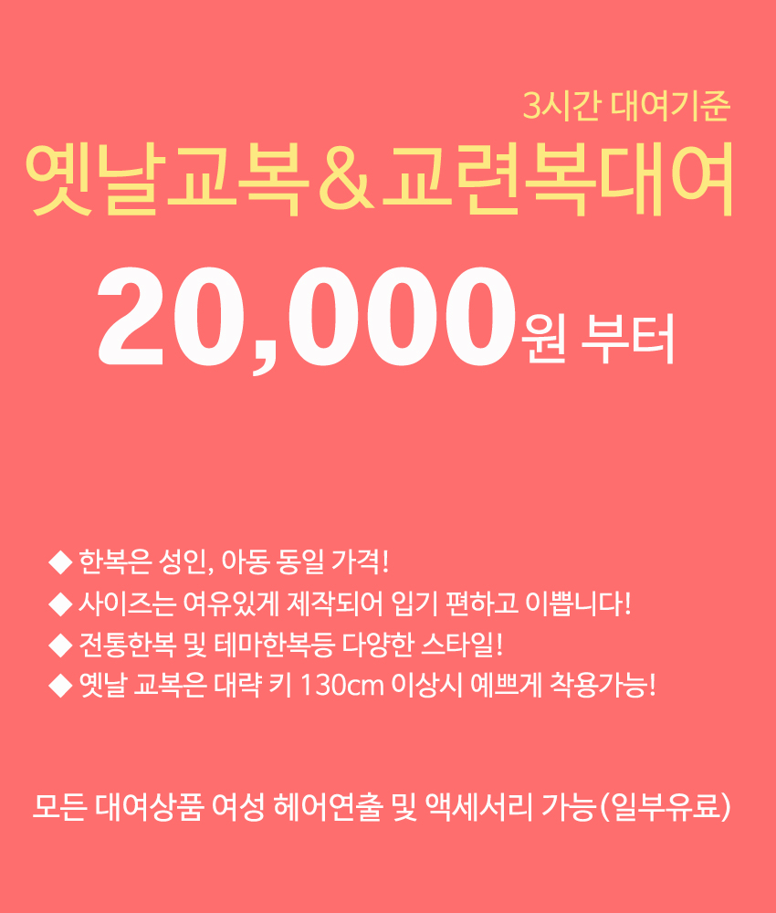- 스페셜 한복 20,000원 (정상요금 28,000원/3H)