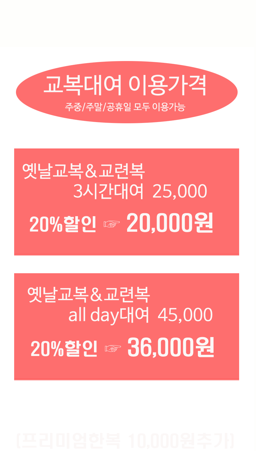 - 옛날교복 & 교련복 15,000원 (정상요금 20,000원/3H)